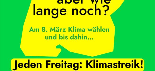 Am 8. März wählt Baden Württemberg den Landtag (Schon ab 16 Jahren!). Von CDU bis Grüne stellen wir fest, es fehlt an konsequentem Klimaschutz. Verkehrswende, Energiewende, Klimaanpassungsfond usw., wir haben konkrete Forderungen für UNSERE Zukunft!